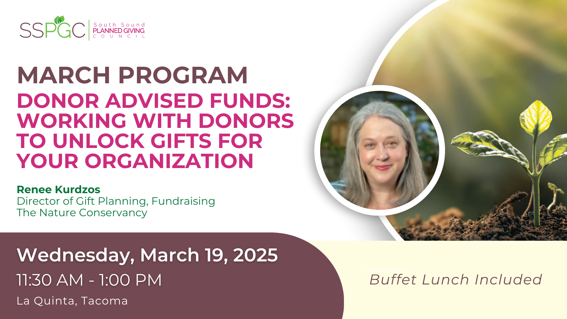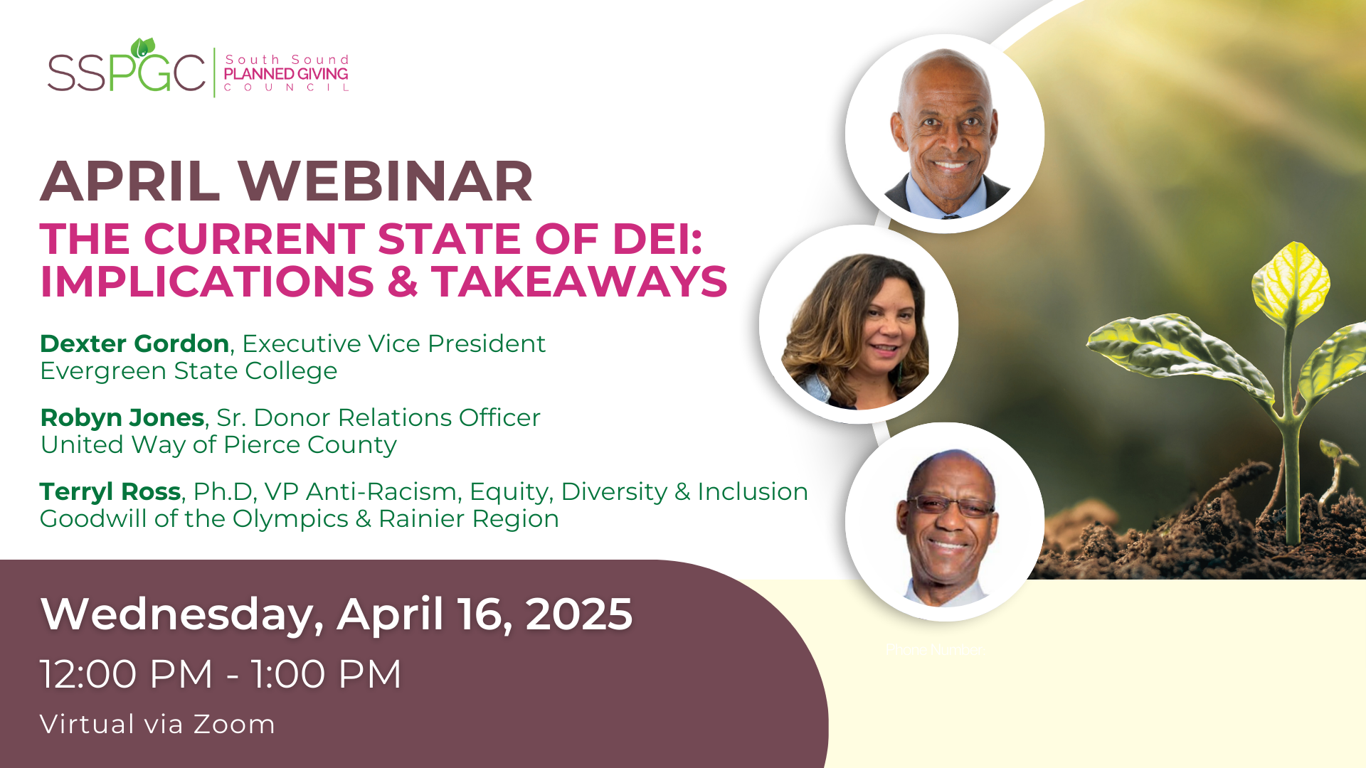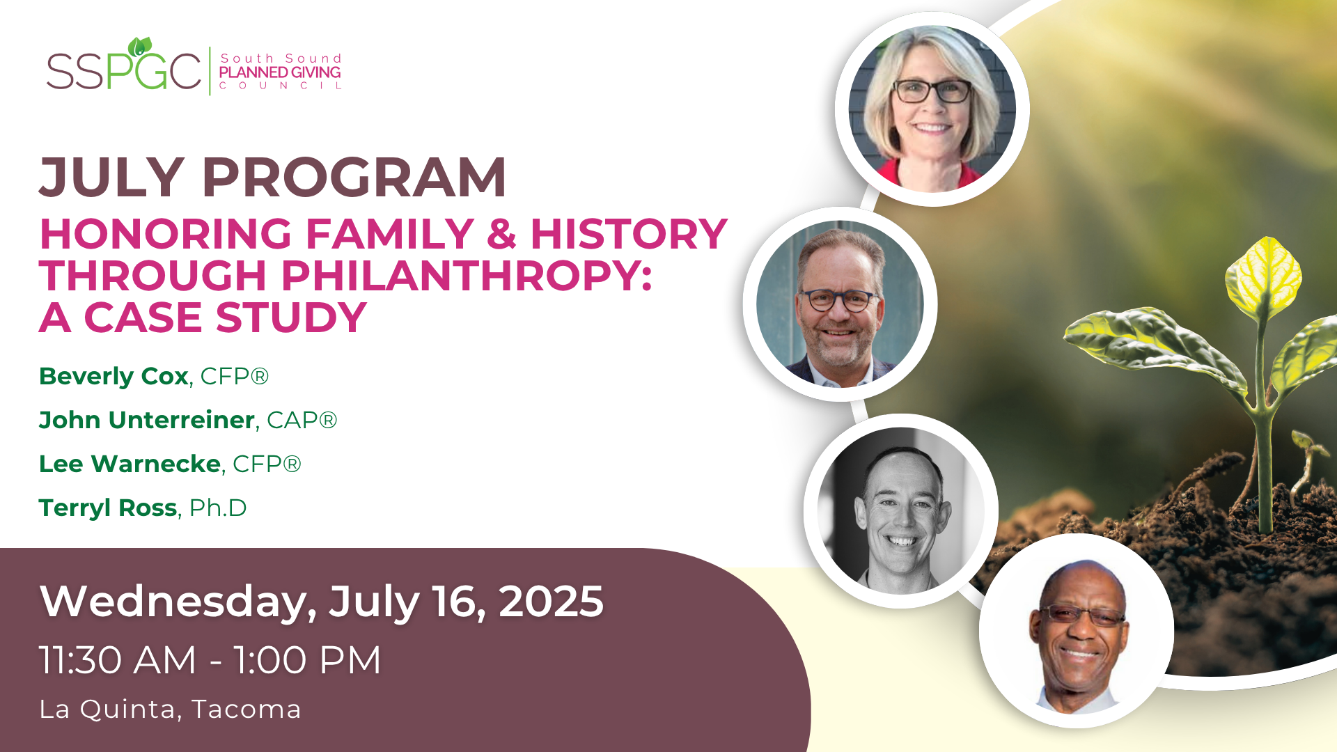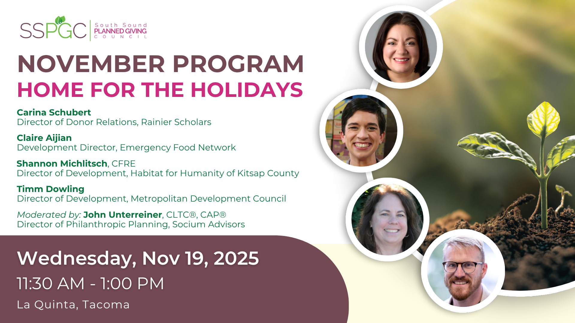 South Sound Planned Giving Council (SSPGC) invites you to a moderated panel discussion exploring how these changes are impacting fundraising, donor engagement, and internal culture within our organizations.